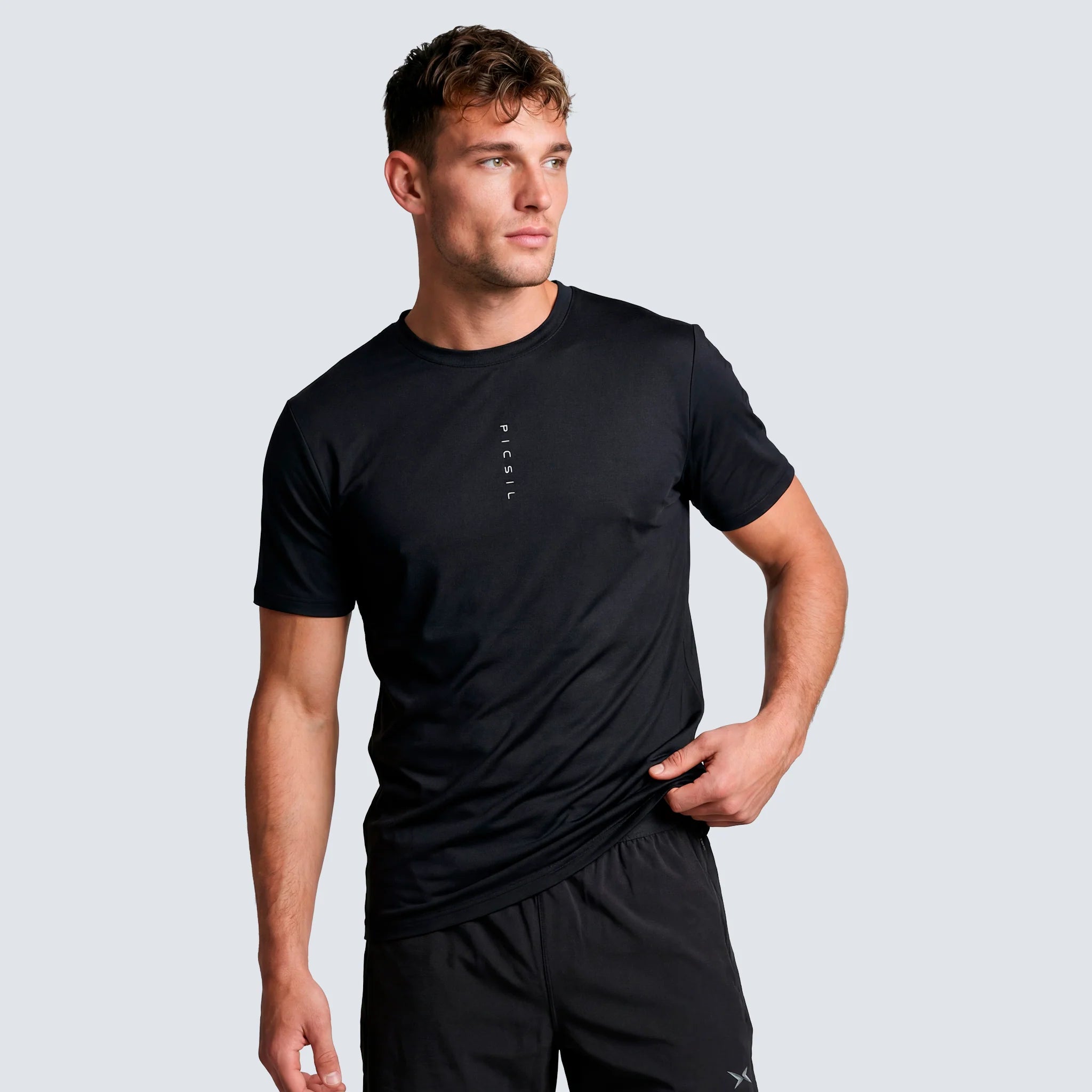 The Men's Performance T-Shirt SS26 is a sports garment with a slim fit designed to offer comfort, elasticity, and maximum performance. Made with a technical blend of 33% cotton, 33% modal, 29% polyester, and 5% elastane, it provides a perfect balance between softness, breathability, durability, and elasticity, adapting to the body and accompanying you in every movement.